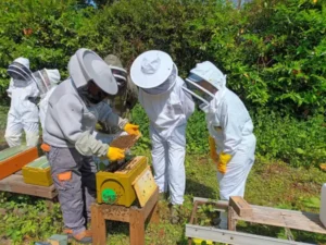 - Hands on with the bees.